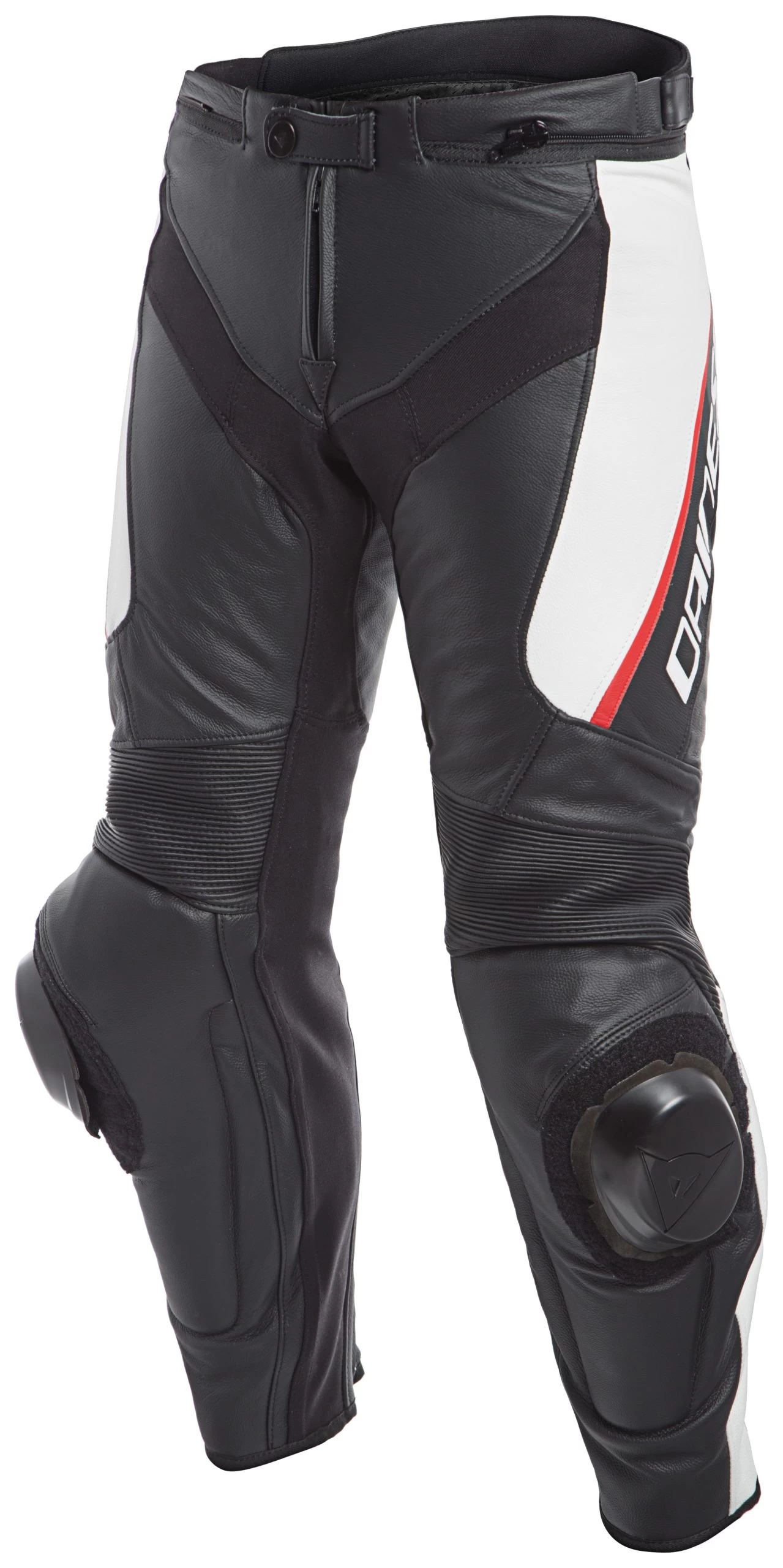 Designed for maximum agility, the Dainese Delta 3 Leather Pants use the same S1 bielastic fabric and Nanofeel Silver Ion liner found in top-tier Dainese race suits to keep you flexible and comfortable during aggressive riding. Tutu cowhide leather with CE certified protectors at the knees and hips supply track-level protection. Zip the Delta 3 Pants to your favorite Dainese jacket and let those interchangeable Pista knee sliders drag through the twisties.